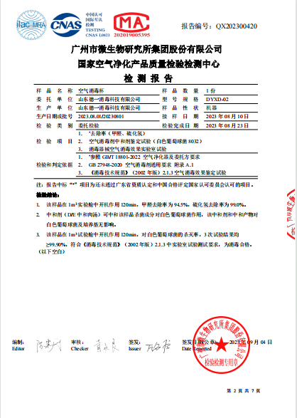 護(hù)小俠空氣消毒杯檢測(cè)報(bào)告